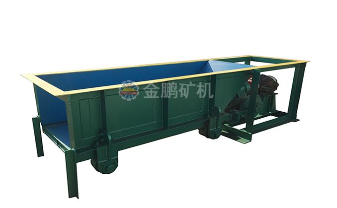 槽式給礦機(jī)設(shè)備一般安裝在料倉出料口下部,礦石落入槽體底部的漏板上,底部漏板設(shè)置在滾輪上,并通過偏心機(jī)構(gòu)使漏板與雙出軸的減速機(jī)相連,然后通過聯(lián)軸器與電動機(jī)相接。工作時,由電動機(jī)通過聯(lián)軸器帶動減速機(jī),并通過偏心盤與設(shè)備在槽架底部和滾輪之間的漏盤一起往復(fù)直線運(yùn)動,從而完成均勻給料。