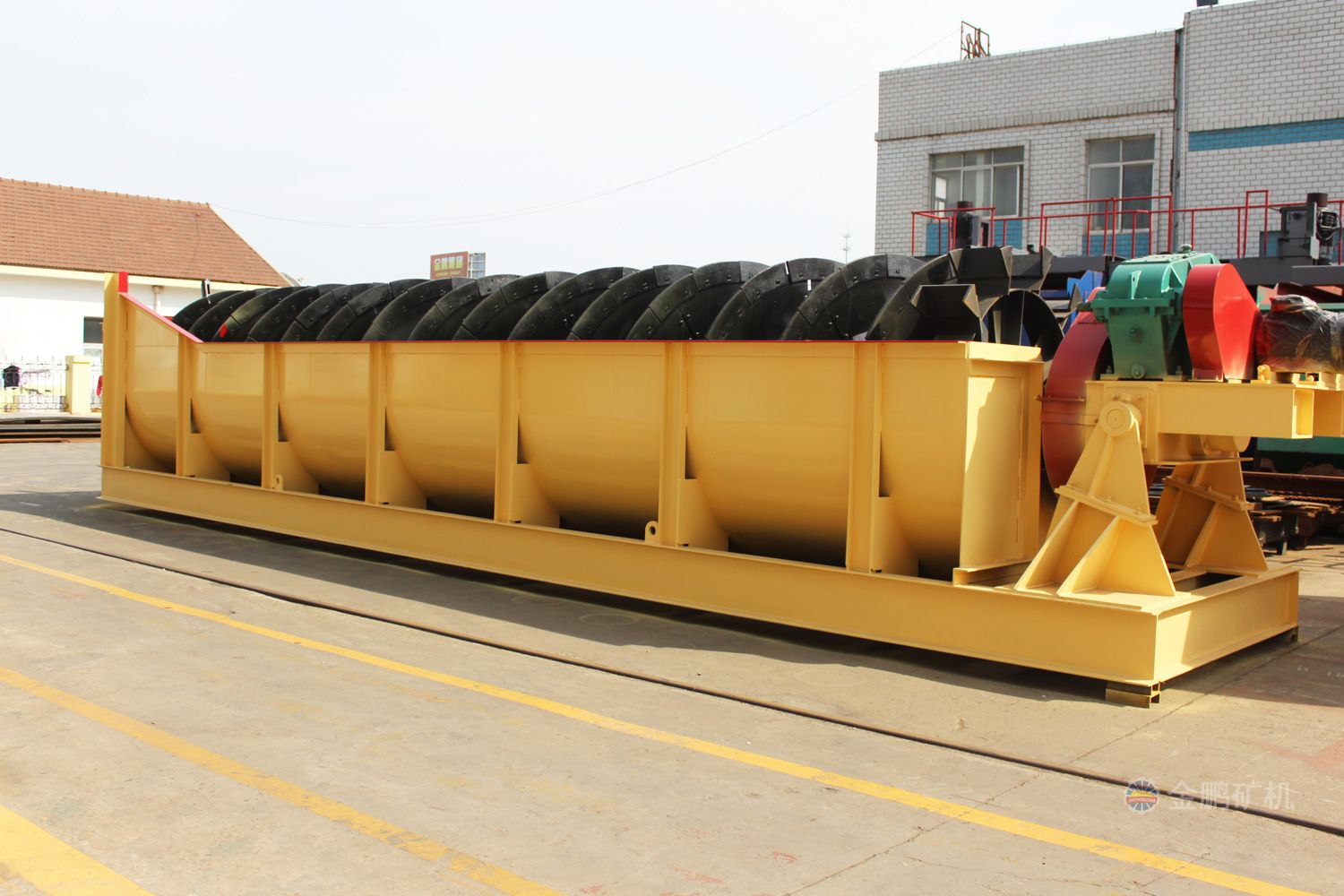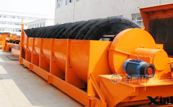 高堰式螺旋分級機(jī)采用將磨細(xì)后的礦漿從位于沉降區(qū)中部的進(jìn)料口給入水槽,傾斜安裝的水槽下面是礦漿分級沉降區(qū),螺旋低速轉(zhuǎn)動,對礦漿起攪拌作用,使細(xì)顆粒懸浮到上面,流到溢流堰處溢出。粗顆粒沉到槽底,由螺旋輸送到排料口作為返砂排出。溢流堰的位置高于螺旋軸下端的軸承中心,低于溢流端螺旋上緣。